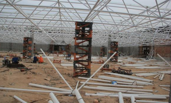 5)总体晋职法:此步履多使用在周边支护以及有多点支护的网架结构,可采取平板升降机、液压千斤顶等小型机具作业拉萨施工;